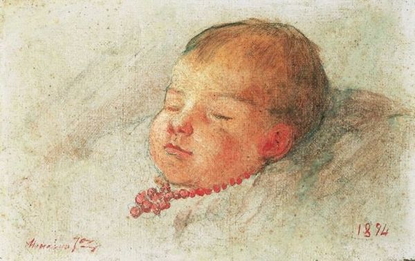 Curator: We're looking at Alice Neel's "Andrew," an oil on canvas completed in 1978. It currently resides in a private collection. Editor: My initial impression is one of fragility, almost a rawness. The paleness of the baby's skin against the neutral background... it evokes vulnerability. Curator: I agree. Neel’s brushstrokes are loose, almost hurried in places, but the overall composition is quite deliberate. Note how the baby's limbs are spread out, creating a sense of openness and exposure. The lines aren't concerned with representing realistic colors. Editor: This depiction feels intentional. Neel often portrayed her subjects in unconventional poses, pushing against traditional portraiture. Her social activism deeply influenced her work. It could be argued that she wanted to humanize traditionally infantilized, vulnerable populations and emphasize a broader point about childhood, challenging bourgeois notions of propriety. Curator: Precisely. One must consider the palette she employed. The predominantly cream, pink and light yellow colors lend a certain dreaminess to the scene. There are very few strong outlines or contouring to create the infant's features; she uses layers to show light and shadow. Editor: Also, there’s a disarming directness. The infant’s gaze isn't directed at us. This, along with his casual pose, speaks volumes about power dynamics—who gets to look, who is looked at, and on whose terms. Consider Neel’s own marginalization as a woman artist working within a male-dominated field... I can’t help but think it echoes some of the ideas presented here. Curator: Well observed. Seeing these themes interacting in a single space certainly provokes thoughtful ideas. Editor: Indeed. It reinforces that art, especially portraiture, is never truly objective.