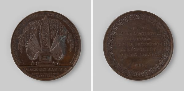This bronze medal was made in 1835 in the Netherlands, commemorating the inauguration of a monument to Professor Kemper in Leiden. The medal embodies the 19th-century culture of public commemoration and the values it sought to uphold. One side of the medal features a stylized representation of the monument itself, while the other bears an inscription surrounded by a laurel wreath, a classical symbol of honor and victory. The choice of Latin for the inscription reflects the enduring influence of classical education on the Dutch intellectual elite of the time. The monument symbolizes Kemper's enduring legacy and serves as a focal point for collective memory. Historical documents like university archives, public records, and biographical accounts of Professor Kemper can give us a richer understanding of the medal. By examining these sources, we can better understand the medal's significance within the social and institutional landscape of the Netherlands in 1835.