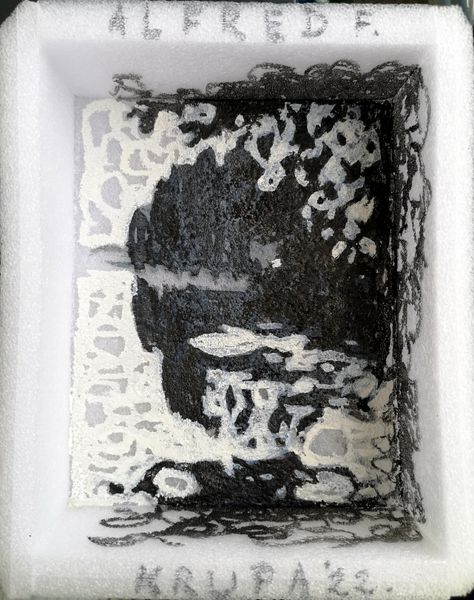 This is a length of black lace with scalloped edges and a floral motif by Gustav Schnitzler, mounted on cardboard. When you look at this lace, do you see it as an object, or as a process? The way the delicate threads intertwine, forming a pattern that's both intricate and airy, feels like watching a dance unfold. There’s a tension there, a pull between the density of the black and the lightness of the design. It makes me think about how we construct our own patterns, the choices we make, and the traces they leave behind. I'm drawn to the way the lace spills over the edge of the cardboard, as if it can't be contained. That small piece on the extra card is a punchy addition! It's a reminder that art is never really finished. It's always in conversation with itself, with the world, with us. Just like life, art is about embracing the messy, the unresolved, the beautifully ambiguous. Think about Eva Hesse, and how she worked with string!