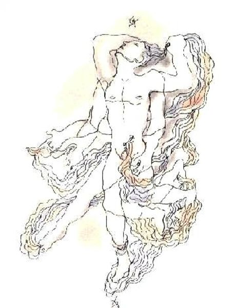 Editor: Harry Clarke's "The Year's at the Spring," created in 1920 with ink on paper, has such an intricate and ethereal quality. What's your interpretation of the imagery? Curator: The figure immediately strikes me as archetypal— a goddess perhaps, emerging from a solar eclipse. Consider how eclipses throughout history and across cultures often signal both destruction and rebirth. Do you see any additional symbolic resonances in the details? Editor: Well, the radiant sun-like halo definitely adds to that goddess-like quality. And her dress, with all those tiny details, feels almost like a map of constellations. Curator: Precisely. The garment evokes celestial maps and speaks of an interconnection between the terrestrial and cosmic realms, a kind of cultural memory we continue to imbue such images with. Her gesture towards the bird, does that resonate with any narratives for you? Editor: Maybe a peace offering, or perhaps a soul taking flight? The fragility of the bird contrasts sharply with the monumentality of the figure's stance. Curator: Indeed. And notice Clarke’s signature use of elaborate ornamentation, an extension of art nouveau aesthetics intertwined with fin-de-siècle symbolism. All of that points to something both sacred and profoundly human—hope amidst inevitable change. Editor: I see it now, thank you for unveiling its deeper meaning; I had overlooked these symbols! Curator: My pleasure; revisiting cultural symbols enables us to tap into centuries of shared hopes and anxieties.