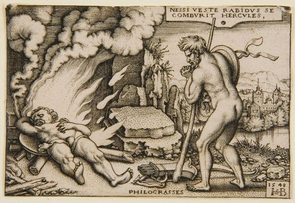 This print, titled “Nacht” or “Night”, was made anonymously using engraving. Here we see the cultural concept of night personified as a muscular male figure in a dark cave, surrounded by nocturnal symbols like owls and bats. This image probably originates from the Low Countries, present-day Belgium and the Netherlands, sometime in the 16th or 17th century. The Northern Renaissance witnessed a surge in allegorical prints like this one, reflecting a society steeped in classical learning and religious symbolism. The use of Latin reinforces this sense of classical authority, as does the idealised male nude, derived from classical sculpture. This print presents a vision of Night as a powerful, even threatening, force. To understand this image more fully, one might consult emblem books and astrological treatises from the period to appreciate what ‘Night’ meant to the people of the time. Art historians can reveal how the image of "Nacht" reflects the worldview of its time.