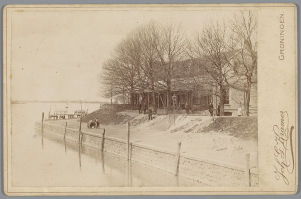 Editor: Right, let's dive in. This is "Gezicht op de Biltstraat vanuit herenhuis De Oorsprong" – which translates to "View of the Biltstraat from the Manor De Oorsprong" – a gelatin silver print taken by Henry Pauw van Wieldrecht in 1888. I’m struck by how serene, almost ghostly, the image is. What pulls you in when you look at this? Curator: Ghostly, yes! That's a lovely way to put it. For me, it’s about the capture of a world in transition. You've got this stately home, “De Oorsprong,” framing the Biltstraat, but it’s more than just bricks and mortar. It's a societal viewpoint, an established order gazing upon…what? Editor: What indeed? A changing world, perhaps? Curator: Precisely. Van Wieldrecht is documenting his reality. Photography in the late 19th century…it’s not just snapping a picture; it’s a deliberate act of preservation and perspective. Editor: So, the realism – which I wouldn’t immediately connect to a “ghostly” feeling – comes in with that impulse for documentary? Curator: Spot on. The bare trees, the subdued tones…they contribute to a feeling of stillness, almost like a stage set. This intersection of grand estate, fledgling cityscape and artistic framing evokes both what the artist sees and perhaps their place in this vista. Editor: It almost feels like a commentary, like Van Wieldrecht is saying something about the established order looking out at this evolving world, through the then-new lens of photography. Curator: Perhaps… Or maybe it’s more innocent – a record. Either way, that intersection of personal and objective is where the magic hides. Don’t you think? Editor: I do. It makes me want to learn more about both the Manor *and* the man behind the lens! Thanks for this insight. Curator: My pleasure! These hidden stories, that's what keeps me going!