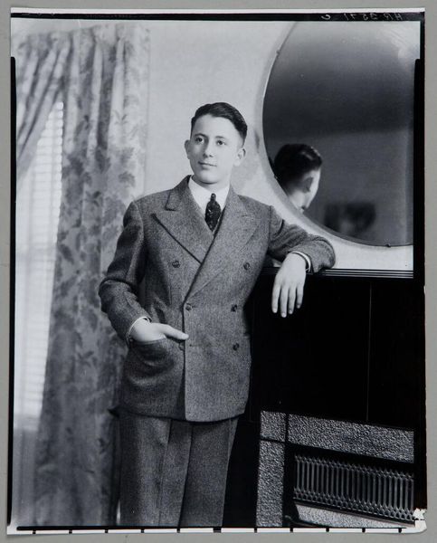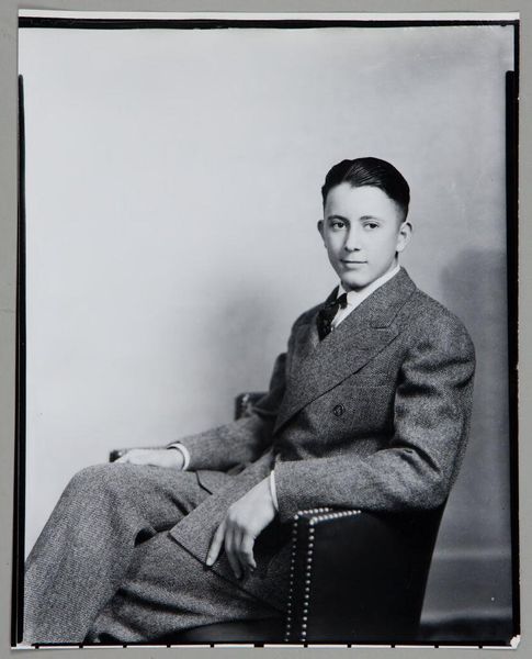 This gelatin silver print, by Paul Gittings, captures a young man in a herringbone suit. The image itself, a product of darkroom alchemy, carries social weight. Photography, even in its early days, democratized portraiture. No longer was it solely the domain of the wealthy to have their likeness captured, but through the repeatable process of photography, a portrait became accessible to a broader segment of society. Note the subject's attire: a herringbone suit. The textile's twill weave speaks of industry, mass production, and a striving for middle-class respectability. Gittings’s photograph, therefore, isn't just a simple portrait; it's a study in aspiration, expertly framed and printed. It’s a window into a world where the tools of art and industry converge, reflecting the values and desires of a changing society.