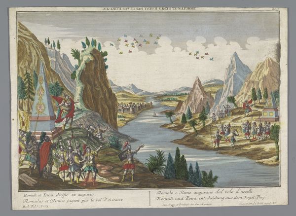 Ernst Damitz made this watercolor and graphite drawing entitled Landscape with Erupting Volcano, Bridge, and Wedding Party sometime in the first three-quarters of the 19th century. It is fascinating to see an image of a wedding juxtaposed with an erupting volcano. This landscape, like many others of its time, represents the sublimity of nature, with a romanticized view of both its beauty and its destructive power. Consider where and when this image was produced: Germany, during the rise of Romanticism. The volcano, a potent symbol of untamed nature, may reflect contemporary anxieties about social upheaval. This was a period of significant change with the rise of nationalism and revolutionary movements. It's interesting to note how the wedding party is integrated into this dramatic scene. The artist seems to use it as a commentary on the endurance of social institutions, even in the face of nature's fury. To understand this work, we might research the cultural significance of volcanoes in 19th-century German art and literature, or look into the history of wedding rituals and their symbolic value. Doing so helps us interpret the artwork within its specific historical and cultural context.