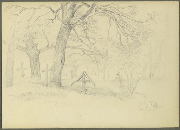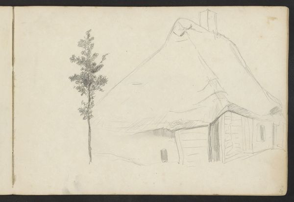 This pencil drawing by Johannes Tavenraat presents a humble rural scene, with a shed sheltered by a robust tree. The tree, an archetypal symbol of life, knowledge, and connection, stands guard over a small structure, possibly a stable, hinting at the nurturing of life. The image reminds me of the "axis mundi," the world axis seen in ancient mythologies, often represented as a tree or pole connecting the earthly and spiritual realms. Notice how the tree dominates the composition, its gnarled branches reaching out like protective arms. This echoes the symbolism found in medieval tapestries and illuminated manuscripts, where trees often signified shelter, growth, and divine presence. Tavenraat, perhaps unknowingly, taps into our collective memory, evoking a deep, subconscious connection to nature's nurturing power, reminding us of the cyclical nature of life and its enduring symbols.