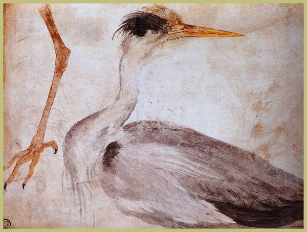 Albrecht Dürer created "The Stork" with pen and ink, using fine, controlled lines to define the form of the bird. The drawing creates a delicate balance, with the stork's form emerging from a speckled, aged paper that gives a sense of time and history. Notice how Dürer uses the texture of the lines to suggest the stork's plumage. The intricate details are not merely descriptive, but structural. Dürer's strategic use of hatching and cross-hatching creates depth and volume while maintaining a sense of lightness. The bird's posture is carefully observed, and its stance conveys stability and alertness. The way Dürer uses line is almost scientific, yet also artistic. It evokes both the objective precision of naturalism and the subjective interpretation of form. Ultimately, it invites ongoing contemplation about the intersection of art and science. The drawing is a demonstration of how careful observation and rendering can lead to both knowledge and aesthetic appreciation.