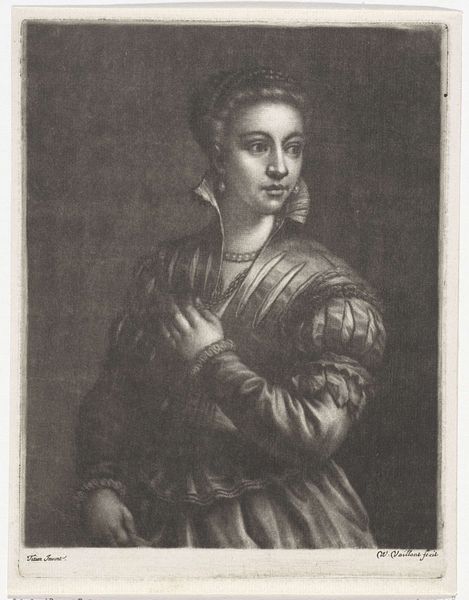 Editor: This is an X-radiograph of "Mrs. Benjamin Carpenter" by John Durand. It's fascinating to see beneath the surface of the painting. What do you notice about the composition and structure that the X-ray reveals? Curator: The monochrome tonality accentuates the linear elements, highlighting the artist's deliberate construction of form. The X-ray reveals the density and application of paint, allowing us to analyze Durand's technique beyond the visible surface. Note the patterns of brushstrokes and the underlayers—what do they suggest about his working method? Editor: It seems like there are some distinct layers; maybe areas he reworked? This view offers such a unique perspective. Curator: Precisely. The formal qualities exposed by the X-ray invite a deeper inquiry into artistic process. We can see the artist's hand in a completely new way. Editor: I've certainly learned a lot about looking at art from the inside out. Thanks! Curator: Indeed. A renewed appreciation for the artistry in its rawest form.