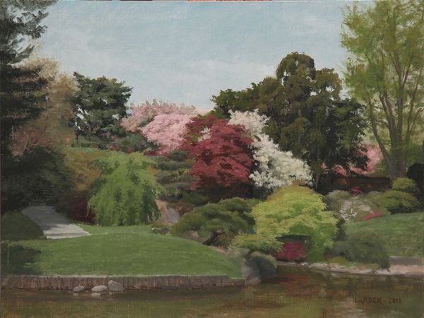 Joshua LaRock has created a painting of crab apple trees in bloom, using oil on canvas. The material qualities of oil paint lend themselves well to this subject; LaRock uses its capacity for blending to evoke the soft, diffuse light of a spring day. Notice the textures he builds up in the blossoms, layer upon layer, creating depth and volume on a flat surface. This is a labor-intensive process, requiring patience and precision. The artist isn't merely representing a scene, he is using the materiality of paint to capture a sensory experience. It is also interesting to think of oil paint itself as a product, refined through complex industrial processes. The pigments are often derived from minerals, further connecting the painting to the earth. By focusing on the artist's labor and the inherent qualities of the materials, we can see how this painting transcends simple representation, becoming an object with its own unique history and presence. It reminds us that art is always rooted in material reality, not just an idea.