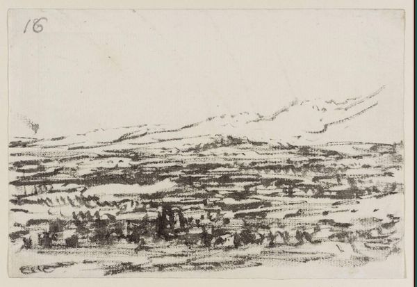 Editor: This is "Plate 5" by Alexander Cozens. There isn't a date listed, but it's in the Tate collection. It's a landscape of sorts. I'm intrigued by its abstract quality. What do you see in this piece, especially concerning its composition? Curator: Observe how the stark contrast between black and white defines the form. Cozens uses a deliberate scattering of marks. Note how the composition balances solid forms against the negative space of the paper. Editor: So, the shapes themselves, devoid of context, are the focus? Curator: Precisely. The work investigates the structural relationship between line, shape, and space, creating a visual grammar of landscape. Editor: That's a fascinating way to look at it. I was so focused on trying to interpret a scene. Curator: Sometimes, the scene *is* the structure. Focusing on the formal elements reveals a deeper understanding of the artist's intentions. Editor: This has definitely changed my perspective. Thanks!