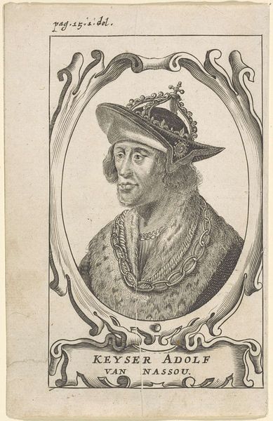 Editor: This is "Portret van Gattamelata," a print from somewhere between 1549 and 1575, by an anonymous artist. The figure stares directly out, and something about the formality and precision of the lines almost feels…stiff, like an official document. What do you make of this Renaissance portrait? Curator: Stiff is a good word! Though, I wouldn't immediately use it negatively. It does have the character of a woodcut, which always brings a particular crispness, don't you think? There's something resolute about it. Makes you wonder, what stories does *he* have, staring out at *us* centuries later? Perhaps that very distance, that time-traveling gaze, adds to that formality? Editor: That’s interesting. The time element. It does feel like he’s been looking for a very long time. Does the crispness contribute to the way he's been immortalized? Curator: I think so. Imagine the artist carefully etching each line, deliberately deciding what to show and what to conceal. This wasn't a quick snapshot; it was a deliberate act of memorialization. Do you notice the lines framing his face, almost like the curves of the page have wrapped him? That lends him such strength. Editor: Yes, like he’s contained but not trapped. And is that, “Gattamelata” inscribed in the lower corner? Is that who he is? Curator: It is! Erasmo of Narni, nicknamed Gattamelata, a condottiero, an Italian mercenary general. I wonder what he’d think of his portrait now? Editor: Wow, a mercenary. Looking at the lines, they’ve immortalized him, ready to engage forever. It's great how a closer look changes the impression. Curator: Indeed! That's the fun, isn't it? Digging a little deeper, we’ve met a mysterious, faraway general.