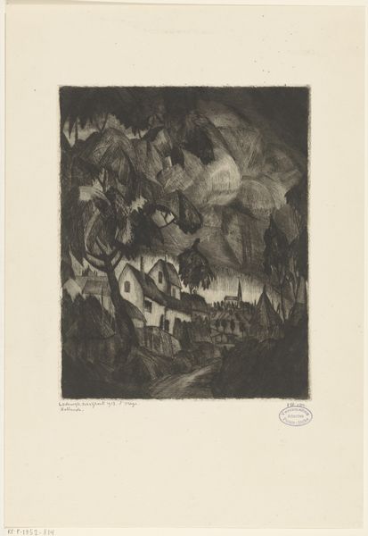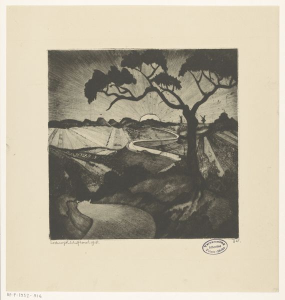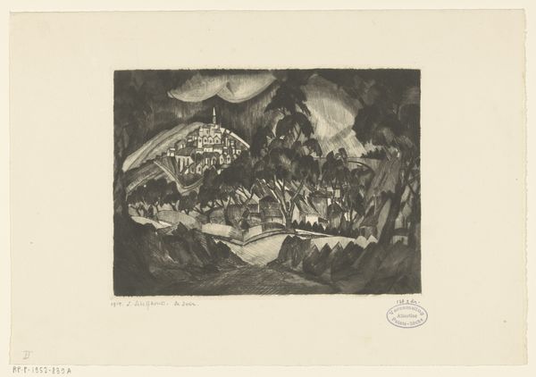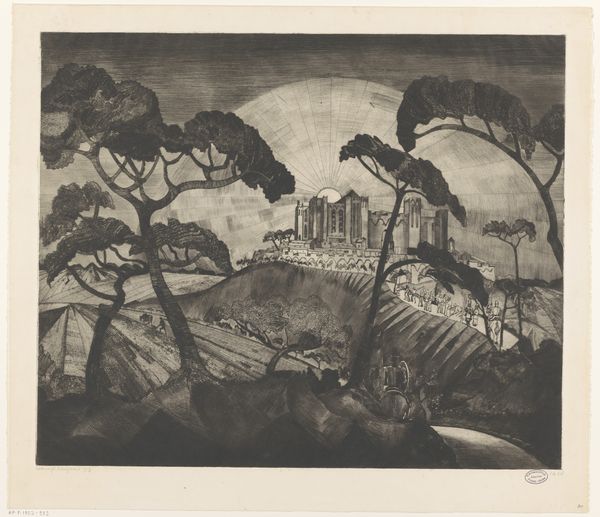 Lodewijk Schelfhout made this landscape print of Provence, and it's all about the power of line. The marks are economical but evoke so much, from the foliage of the trees to the distant hills. There’s this incredible dance between light and shadow, created entirely by these etched lines. Look at the lower left; those dark, angular shapes could be rocks or buildings, but they're also just a pattern of lines, confident and bold. The way the light seems to radiate from the sky, those almost Art Deco-ish lines, it's not just a landscape, it's a mood. I'm reminded of Lyonel Feininger, who was making similar work at this time. This piece really highlights how art is a conversation. A conversation that Lodewijk Schelfhout contributes to beautifully with this landscape.
