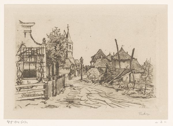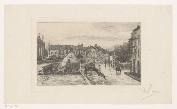 Charles Adams Platt made this etching, A Corner of Portland, sometime near the turn of the century. It depicts a humble street in Portland, Maine, a town that was then transitioning from its maritime past to a more industrial future. The image shows the texture of everyday life, not the grand monuments of civic pride. Platt’s artistic vision was attuned to the subtle social dynamics of this changing urban landscape. We see a world of modest homes, unpaved streets, and working-class figures going about their daily routines. Platt was a member of the New York Etching Club. This was an organisation that played a role in defining etching as a uniquely American art form. Platt's work invites us to consider the social and economic forces shaping American cities at the time. To better understand this image, we might consult local histories, census records, and period photographs, all of which can provide insight into the lived experience of Portland residents.