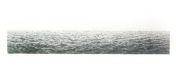 Hiroshi Sugimoto made this silver gelatin print, Seascape: Cascade River, Lake Superior, and what strikes me first is its meditative quality. The grayness kind of blankets everything, making it hard to distinguish where the water ends and the sky begins. Up close, the surface is soft, almost like a memory fading. It's so subtle, the way Sugimoto teases out these tones, it feels like he's painting with light rather than capturing a scene. There's a horizon line, but it's more of a suggestion, a quiet hum between the realms. I am reminded of Agnes Martin, someone else with an interest in quiet expression. This piece isn't about the drama of the sea but more about the feeling of it, the endlessness and the quiet. It's like Sugimoto is showing us that sometimes, the most powerful things are the ones that whisper.