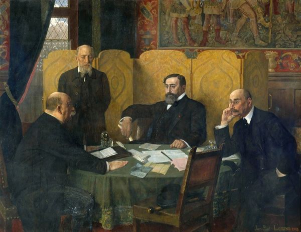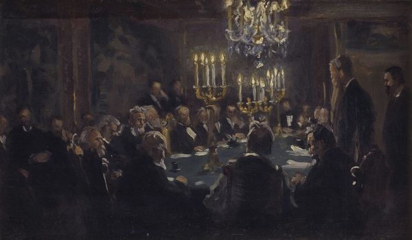 Jean Béraud painted this scene of a Parisian salon, called "Le salon de la comtesse Potocka", during the late 19th century. It offers a glimpse into the social life of the aristocracy in France. Béraud, chronicler of Parisian life, depicts a gathering of elegantly dressed figures in an opulent interior. The visual cues like the formal attire, the portraits on the wall, and the plush furnishings, all speak to the wealth and status of the hostess, Countess Potocka. This salon served as a space for intellectual and social exchange, reflecting the cultural values of the time. The painting’s realism reflects the positivist values of the rising French Third Republic. Béraud’s paintings offer a commentary on the social structures of his time, immortalizing this elite milieu. To fully understand this painting, we might consult historical archives, fashion magazines, and biographical accounts. In doing so, we can unlock the painting’s significance, appreciating how art is deeply embedded in its social and institutional context.
