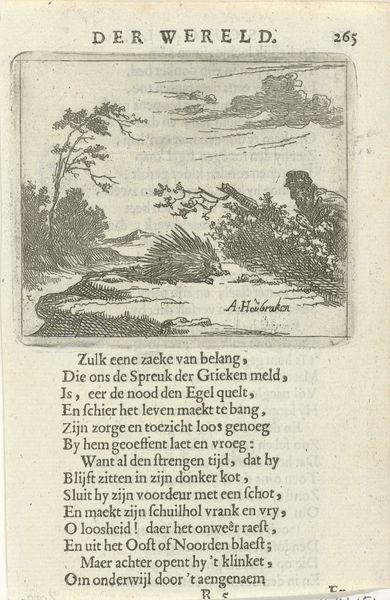 This print, *Figuur bij een appelboom*, was made by Arnold Houbraken, probably in the early 18th century, using the technique of etching. The image is defined by incised lines, where acid has bitten into a metal plate, probably copper, and the ink settles into these grooves before being transferred to paper. Look closely, and you can see how the artist has used hatching, building up many fine lines to create tone and shadow. Note the contrast between the solid dark lines of the figure in the foreground, and the more delicate lines used to depict the foliage of the apple tree, and the landscape in the distance. This kind of printmaking was an important means of disseminating images at the time, almost an industrial process. It allowed for the relatively quick and inexpensive reproduction of images, making them accessible to a wide audience. By focusing on the material process of etching, we can better understand how Houbraken's work contributed to a broader culture of knowledge and image production.