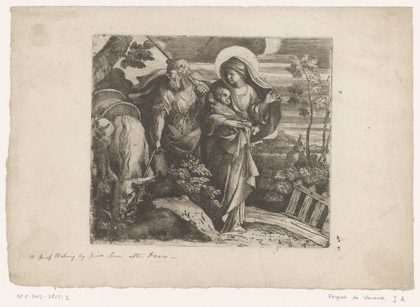 Jean-Louis Forain made this drypoint titled "Unwed Mother" sometime in his lifetime. The whole scene is built up from a mesh of marks, like tangled threads, that suggest these worn out figures. The lines feel raw and immediate, full of hesitancy and uncertainty. Look at the way he renders the dress of the figure at the back, it’s all done with these frantic lines, pulled every which way. There is a vulnerability to the way he leaves the marks exposed; you feel the scratching of the needle across the plate. The faces of the figures blend into one another. It’s hard to distinguish individual expressions, beyond this shared sense of weariness. You can see the influence of someone like Daumier in his work, there is a similar interest in the everyday life of ordinary people and a keen eye for social critique. Ultimately, Forain's print invites us to reflect on themes of social inequality and human suffering, but leaves space for multiple interpretations and perspectives.