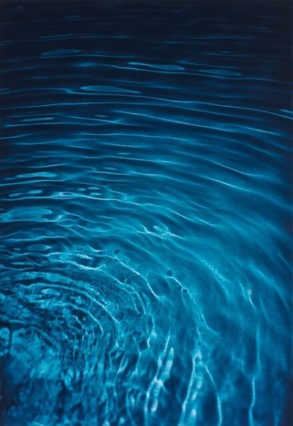 Curator: Alright, let's dive into this print by Wolfgang Tillmans, created in 1999. It’s titled "Konzentrische Kreise," which translates to "Concentric Circles." What are your immediate thoughts when you look at it? Editor: Pure tranquility. It's like staring into the stillest, bluest dream. The water almost hums, you know? Makes you wanna dip your toes in. But then there's this sense of something...infinite. A tiny disturbance in a massive, unknowable blueness. Curator: The blueness is certainly striking. Tillmans is known for his innovative approach to photography, and he often plays with abstraction, even when depicting seemingly mundane subjects. The cyanotype process he may have used to produce the piece can also have interesting effects. Would you say this plays into themes of contemporary photography at all? Editor: Oh, absolutely. He takes the everyday – a splash in a pond – and elevates it. Makes you consider it. You think of Duchamp plunking a urinal into a gallery and making everyone question "art." But this...this makes me question "reality," which I guess can have its root in conceptualism as well, if you think about it. Is that bug creating all those ripples the center of our world? Maybe. Makes you ponder the power of small disturbances and conceptual conceits, no? Curator: Yes, definitely. And that brings in a social dimension, I think. How does this work make us think about our place in the world and the way institutions portray photography as art? Is this documentation, or pure aesthetic expression, or some blend of the two? Tillmans really makes us reflect on the institutional framing around photographic imagery. Editor: It's cool that you said that. A drop of pigment makes such big waves, but who is it truly reaching and how? But then I realize...who cares? This has got the power to transcend. Makes us stop and think about time and space – how far they actually stretch. I've enjoyed floating here in its ocean of inquiry. Curator: Me too. Thanks for joining me in looking closely. This examination highlights some exciting discussion about its history and role.