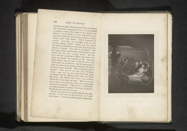 Curator: Here we have Otto Scharf's photographic work, "Stilleven met boek, schedel en pistool," predating 1901. He uses gelatin-silver print. Editor: Whoa, talk about heavy! Death staring you down from the pages of a book, with a gun thrown in for good measure. Pretty stark visual statement, even for a still life. Curator: Indeed. Scharf masterfully arranges these objects. The skull, meticulously rendered, is juxtaposed with the open book, suggesting a dialogue between mortality and knowledge. Observe how the pistol's placement complicates the narrative. Editor: It feels like Scharf's setting the scene for a philosophical Wild West showdown. Is knowledge power? Can we cheat death? It’s theatrical, almost comically melodramatic, in its symbolism. That aged paper lends it this beautiful aura of past struggles. Curator: The landscape style choice seems deliberately unsettling. Typically landscape evokes feelings of peace and serenity; here, the context flips it into one that disturbs instead. The tonal range also creates a sense of claustrophobia despite the genre, trapping those elements of the "vanitas." Editor: The shadows definitely give it that trapped feeling. I keep wanting the skull to say something profound, but maybe the point is, it can’t. Curator: Perhaps Scharf is highlighting the limitations of human intellect against the inevitability of fate, using the arrangement of these quotidian items. Editor: Or maybe he was just having a dark day and thought, "Hey, let's photograph my existential dread." Either way, it makes you think about the stories we tell ourselves to cope with, well, everything. Curator: An evocative piece. Scharf manages to blend symbolist aesthetics with tangible representations of human fallibility. Editor: Yeah, leaves you with more questions than answers. That's the sign of a good, slightly morbid, work of art, right?