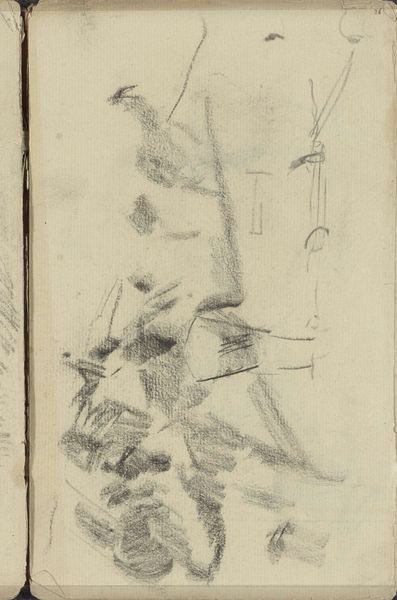 Editor: We're looking at "Abklatsch van de krijttekening op pagina 31," a pencil and frottage drawing on paper by Isaac Israels, created sometime between 1886 and 1903. It's so delicate, almost ghostly. What stands out to you in this piece? Curator: The seeming fragility is exactly where its power resides. Consider Israels' social position. As a Jewish artist in a rapidly changing Europe, he navigated both acceptance and exclusion. How does the "ghostly" nature you perceive relate to themes of impermanence and the precariousness of identity within a society grappling with industrialization and rising nationalism? Editor: That’s a perspective I hadn’t considered. I was focused on the visual lightness of the sketch, but the broader context adds layers. Curator: Exactly. It’s not merely a landscape study. The frottage technique, creating texture through rubbing, can be viewed as an act of extracting the unseen, revealing the hidden histories embedded in the very surfaces of our surroundings. It’s subtle, almost clandestine. Who do you think the intended audience for a sketchbook drawing would have been? And how does that influence our reading of it now that it's in a museum? Editor: It probably wasn't intended for a wide audience, perhaps just for the artist's own reference or a small circle. Being in a museum changes its purpose and amplifies the message. Curator: Precisely! Now we see it and discuss its implications in a vastly different context. That tension – between private reflection and public display – informs how we engage with its historical and political resonance. Editor: This has really transformed my understanding of the piece. Seeing it as more than just a preliminary sketch, but as a cultural artifact loaded with social meaning… I appreciate that. Curator: And I've been prompted to consider the act of sketching itself as a potentially subversive act of observation within a specific cultural landscape. Thanks to your insights!