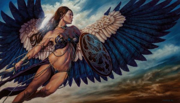 Michael C. Hayes created this painting, "Awakening," sometime in the 20th century. The image depicts a winged woman, draped in green, reaching towards a luminous moon. The painting touches upon timeless themes of transformation and self-discovery. The visual language of this piece evokes a sense of romanticism, reflecting a broader cultural fascination with the spiritual and the otherworldly. We might consider the countercultural movements of the late 20th century in the United States, where there was a surge of interest in mythology, astrology, and personal growth. The figure's upward gaze and outstretched hand suggest a yearning for enlightenment. Is this a feminist reclamation of mythological archetypes or a reflection on the pervasive human desire to transcend earthly limitations? Understanding art like this requires that we delve into the social and cultural context of its creation. Archival research, studies of popular culture, and an engagement with critical theory can all help us to understand the institutional forces that shape both artistic production and reception.