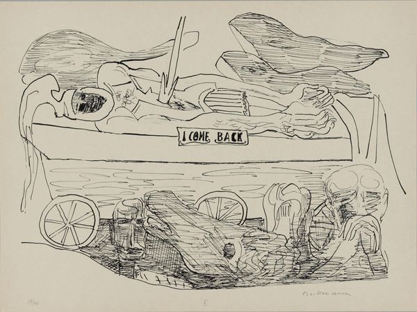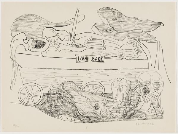Paul Gauguin created this woodblock print, Interior of a Tahitian Hut, late in his career, using a subtractive method of carving into a block of wood. The grainy texture and blurred lines aren't accidental; they're a direct result of Gauguin's technique. Instead of meticulously carving away at the wood, he adopted a rougher approach, emphasizing the inherent qualities of the material. You can almost feel the resistance of the wood against the artist’s tools, a process that imbues the scene with a raw, almost primal energy. The dark ink emphasizes the density of the wood. The composition is deceptively simple. Look closely and you’ll notice how the interior space melds with the figures. This blurring of boundaries can be seen as a commentary on the relationship between humanity and nature, and the artist’s own experiences of cultural immersion in Tahiti. Ultimately, this print invites us to consider the artist's labor, and cultural context. It challenges the idea of art as a purely aesthetic endeavor, revealing its connections to broader social issues and the world of making.