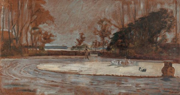 Matthijs Maris captured "The Noord-West-Buitensingel in The Hague" with oil on panel, an evocative scene marked by the imposing presence of a factory chimney that rises above the landscape. This chimney is not merely a structure; it’s a symbol of industry, an echo of progress that reverberates through the ages. Think of the Tower of Babel, a symbol of human ambition, or the minarets piercing the sky, each a declaration of faith and power. The chimney, in a similar vein, represents man’s endeavor to master his environment. Yet, its form, stark and uncompromising, speaks to a deeper unease. It towers, almost menacingly, reminding us of the Faustian bargain inherent in our technological advancements. This motif finds parallels in the industrial landscapes of the Futurists, who both celebrated and questioned the relentless march of machinery. The image evokes a sense of melancholy, a subconscious recognition of the costs of progress. Through the chimney, Maris invites us to contemplate the cyclical nature of human ambition, its triumphs and tribulations echoing across time.
