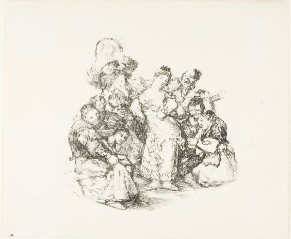 Editor: Looking at Goya’s etching, “Everything is topsy-turvy” from *The Disasters of War*, probably made between 1815 and 1863, I’m struck by the chaos, almost a carnivalesque inversion of order. What exactly am I looking at? Curator: You’re observing the brutal realities of war through Goya's critical lens. What appears "topsy-turvy" is a deliberate distortion of social structures. The print challenges the supposed order of society, especially in times of conflict. Consider how the figures are arranged – are they the powerful or the powerless? Editor: I see figures seemingly carrying others on their backs or shoulders, but they look miserable, and the ones being carried don't seem regal or victorious. More like burdened or…ill? Curator: Exactly. Goya is using visual language to critique the traditional hierarchies and power dynamics exposed and exacerbated during wartime. Who benefits from these inversions? Think about how Romanticism critiqued Enlightenment ideals. Do you see that at play here? Editor: I think so. Instead of reason and progress, we see this irrational, disturbing scene. It seems to be suggesting that war reduces everyone to a state of suffering, regardless of their social position. So Goya is using art to make a political point, challenging us to rethink power. Curator: Precisely. It questions the justifications for violence and the supposed heroism associated with war. What does this inversion reveal about the social contract? How might we interpret this image through a post-colonial lens, considering Spain’s imperial history? Editor: That's something I hadn't considered. Viewing it as a commentary on colonial power structures… I’ll need to reflect on that. Thank you, this has shifted my understanding quite a bit. Curator: My pleasure. Let's both keep interrogating the visual language artists use to critique the status quo. It is essential that we continue to do so!