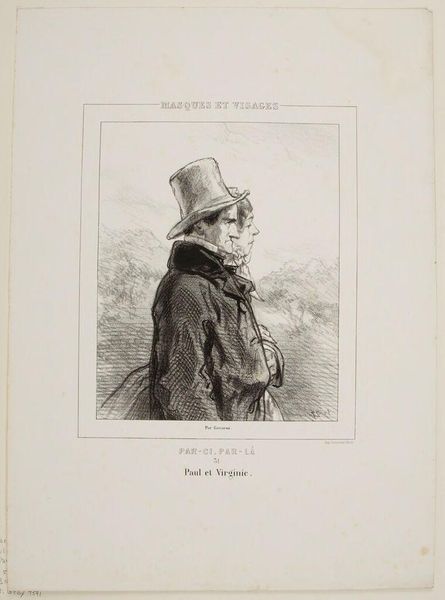 Curator: This etching by Paul Gavarni, entitled "A fait bien des malheureuses!", presents a man who's seen better days. It's from a series called "Masques et Visages," though its exact date is not known. Editor: He looks like he's carrying the weight of a thousand broken hearts. The stark contrast in the etching really brings out the weariness in his expression. I wonder what stories he could tell. Curator: The title translates to "He made many unhappy women!", so perhaps his story isn't one of sorrow, but of causing sorrow. Note the way Gavarni uses light to highlight the figure's face and hands, drawing our eyes to his weary gaze. Editor: Right, the face definitely holds a lot of meaning. The gaze is directed slightly downward, as if he is contemplating something. I find myself wondering about the cultural values, such as beauty standards and gender roles, at play in Gavarni's work. It is fascinating to imagine the cultural context of this image, and the psychological impact that the symbolism and imagery may have had on its audience. Curator: Absolutely. He reminds me of a character in a Balzac novel, full of flaws and contradictions, which makes him all the more human and relatable. I think that is where his power lies. Editor: Yes, a complex figure indeed. It just goes to show how much we can learn from even a small artwork like this.