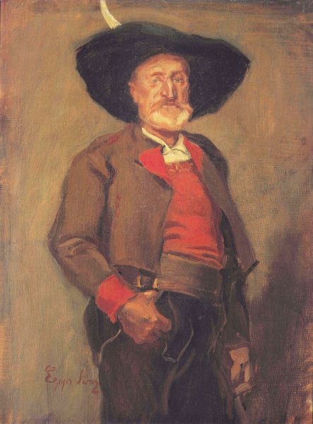 This is a self-portrait by Ľudovít Čordák, an artist who lived through a period of significant social and political change in Europe, including the decline of the Austro-Hungarian Empire and the rise of nationalism. Čordák presents himself with a striking mustache and a confident gaze, reflecting the cultural norms of masculinity of the time. His attire and hat suggest a sense of formality, yet there's also an approachability in his expression. It's interesting to consider how self-portraits of this era often served as a means for artists to define their identity and status within society. The portrait invites us to contemplate the artist's inner world, shaped by the cultural, social, and political forces of his time. It encourages us to reflect on the ways in which individuals navigate and express their sense of self amidst broader historical currents.