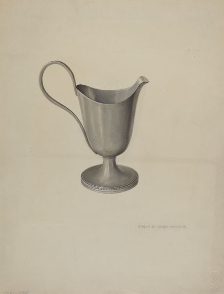 Roberta Spicer made this drawing of an egg cup with graphite on paper sometime around the late 19th or early 20th century. The drawing has a delicate, almost faded quality, like a memory recalled from a distant past. The egg cup is rendered in soft, muted tones, with subtle gradations of light and shadow. Spicer's technique is meticulous, capturing the smooth, curved surfaces of the cup with a gentle touch. Look at the way she uses the graphite to create a sense of depth and volume. The handle casts a shadow, creating a delicate play of light and dark. It's like she's trying to hold onto something precious, something fragile. This drawing reminds me of the work of Giorgio Morandi, who also found beauty in simple, everyday objects. Both artists invite us to slow down, to contemplate the quiet poetry of the ordinary. The egg cup is just an egg cup, but Spicer transforms it into something more, a vessel of memory and emotion. It shows us how art helps us to see the world in new ways.