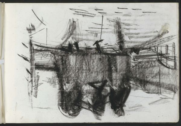 Editor: So, this drawing, “Drie vrouwen op straat,” or "Three Women on the Street," by Isaac Israels, likely done between 1886 and 1934, is really intriguing. It’s just a charcoal sketch, so raw and unfinished. It feels… fragmented, like a memory half-caught. What catches your eye about it? Curator: Oh, I adore its immediacy! It feels like a stolen glance, doesn’t it? As if Israels were sitting in a cafe, scribbling down impressions as people hurried by. There's something deeply human about its imperfections, all those smudged lines and hesitant strokes. I imagine him captivated by the fleeting interactions, the way light fell on their dresses. Don’t you think the ambiguity almost adds to the scene's inherent intimacy? Editor: Absolutely. It feels so much more personal than a finished painting somehow. But it is a bit chaotic... I have trouble actually discerning three women distinctly. Curator: And isn't that revealing about street life itself? It’s never neat or fully defined. Instead, its fleeting moments, partial glimpses... I suspect he's capturing the *feeling* of seeing these figures, more so than trying to make them easily legible. A bit like how we perceive our own memories - faded, perhaps a bit jumbled, with certain features emphasized while others drift off... Editor: I see what you mean. It’s like he’s capturing a vibe rather than a perfect portrait. Curator: Exactly! And that “vibe,” as you put it, holds so much more truth, more authentic emotion, than any polished depiction ever could. And it makes you wonder about the narratives he glimpsed but didn't fully know. Editor: That’s a great point! It’s more about the potential stories. I definitely see this differently now. It feels more intentional in its… incompleteness. Curator: Isn't it glorious when art reveals more to us the more we sit with it?