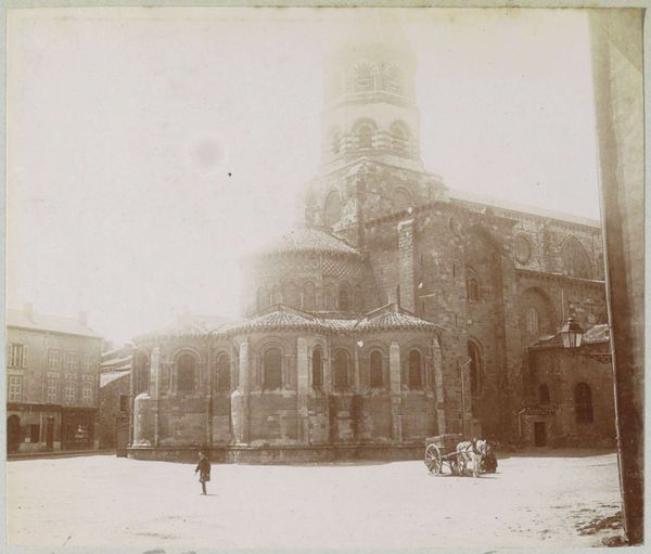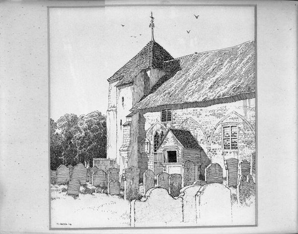 Curator: This delicate ink drawing, made in 1849, captures a moment laden with history. Benno Friedrich Toermer titled it, simply, Ruins with Cannon and Soldiers, part of what's known as the Cropsey Album and held at the Metropolitan Museum of Art. What impressions does it stir for you? Editor: Immediately, a profound sense of melancholy. It feels haunted by recent trauma – a visual elegy. The light is diffused, almost spectral, illuminating these pockmarked ruins. It’s romantic, yes, but a very stark, ruinous romanticism. Curator: Precisely! Toermer masterfully employs the Romantic sensibility to explore themes of decay and the passage of time, so relevant in an era grappling with rapid change and upheaval. These ruins stand as potent symbols of past glory now lost. Think of Shelley's "Ozymandias," for example. Editor: Absolutely. And those tiny soldiers and cannon at the foot of these imposing ruins serve as stark reminders of the human cost. It almost diminishes warfare itself to place them next to architecture that once inspired such awe, now, like war itself, also diminished. Curator: The cannons do add a particularly poignant touch. They’re remnants of battles fought, sieges endured. This imagery invites reflections on military conflict and its inevitable toll. How these symbols permeate cultural memory even now is quite overwhelming. Editor: There is also the church still bearing witness amid the devastation. Its cross remains defiantly visible—a faint symbol of faith juxtaposed with violent dissolution. That juxtaposition heightens the emotional resonance for me, playing on our own contradictory impulses when experiencing the past. We seek beauty amidst decay. Curator: A point very well taken. The artist may be offering a narrative of hope. The building may be severely damaged, but not totally destroyed. There are a couple of flags mounted on top of it still as signs of persistence, perhaps even recovery? Editor: Or, flags to cover and maybe mask even greater, unspeakable crimes. But still, as the cross stands there against that ravaged structure, there may well be life beyond ruin. I walk away now less melancholy than before! Curator: Yes! An eye-opening analysis on such an overlooked drawing. A perfect example of why looking into history and memory, can help to lighten even the darkest perspectives.