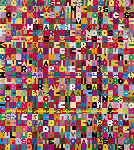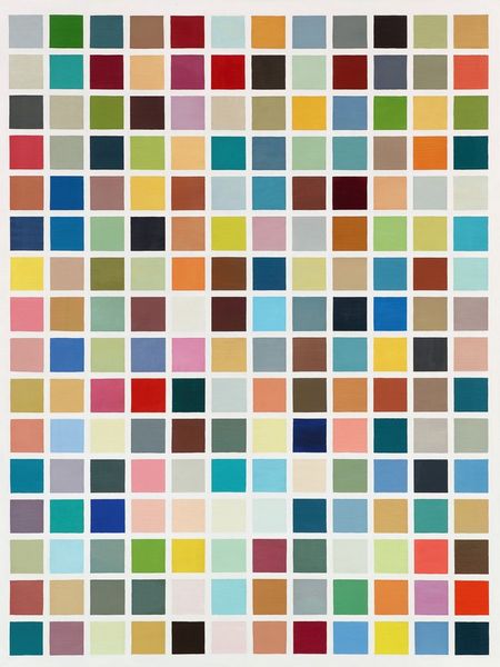 Editor: So, this is Gerhard Richter’s “Yellow-Red-Blue” from 1974, done with acrylic paint. I'm struck by how it appears chaotic at first, yet there's this underlying sense of order because of all the little rectangles. What do you see in this piece? Curator: I see a vibrant tapestry of memory and cultural fragments. Consider how color, specifically, functions within our collective consciousness. How certain color palettes can evoke specific eras, emotional responses, or even societal structures. These blocks, although abstract, pull at something deeply ingrained in our visual lexicon. Do you find any symbolic patterns emerging as you look at the colors and the grids? Editor: I think the limited color palette within each section creates these mini-environments. Almost like looking at different cultures contained in these neat, geometric zones. Red at the bottom feels warm and maybe passionate, the yellow section seems lighter and airy. The blue is definitely calmer. Curator: Precisely. And what about the grid itself? The rigid structure attempting to contain the seemingly infinite variations of color. The grid could be interpreted as an organizing system. Almost like a language of color trying to be classified. Do you see an interplay between control and chaos, order and emotion? Editor: Definitely. The grid tries to impose order, but the colours burst out. I guess the title’s more literal than I thought. Are the colours meant to be symbols? Curator: Think about colour theory; the psychological impact of red, the cool serenity of blue. These colours, used across history, tap into deep cultural meanings and memories, and here they create a dialogue within Richter's chosen structure. Each color, almost acting as an individual word, comes together to form visual poetry. Editor: That’s interesting. So, it’s not just abstract color; it is referencing cultural understanding through these geometric sections? Now, I'm starting to see so many possible combinations of symbols coming from this painting. Curator: It's a dance between individual expression and shared visual language. Thank you for sharing the path in unveiling memory. Editor: It’s a lot to think about, but this definitely expanded how I was looking at the artwork to start with. Thanks!