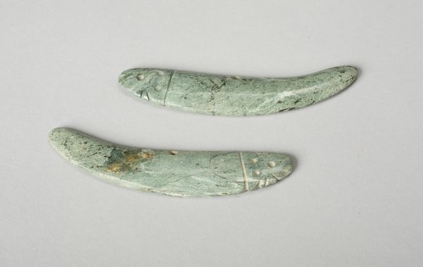 These jadeite earrings, crafted by the Colima people, present a crescent form, each terminating in a stylized zoomorphic head. Consider the semiotic implications of jadeite as a medium. Its inherent value transforms these ornaments into potent signifiers of status and belonging. The deliberate form of the earrings—the smooth, sweeping curve—invites interpretation. It is reminiscent of a lunar phase, potentially symbolizing cycles of renewal or reflecting cosmological beliefs. The artist’s choice to render the animal heads with geometric precision destabilizes any naturalistic reading. The creature-like head with geometric carving invites us to decode a complex network of cultural codes and artistic conventions. The holes are placed with intention which suggests a deeper symbolic function, perhaps linking the wearer to unseen realms or spiritual forces. In their composite form, these earrings transcend mere adornment. They are objects that oscillate between the aesthetic and the symbolic, embodying a sophisticated interplay of form, material, and meaning.