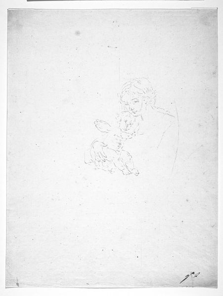 Curator: This is Heinrich Zille's "Study of a Bare-Bellied Infant," a delicate drawing held at the Harvard Art Museums. Editor: It's so simple, almost like a fleeting thought captured on paper. There's a vulnerability to it, a pure, unadorned observation of innocence. Curator: Zille was known for depicting working-class life in Berlin. These studies, although seemingly private, fed into his broader social commentary. He wasn't just drawing a baby; he was drawing a reality. Editor: I see that. It's not sentimental; it’s more like a raw, honest glimpse. The lines are so tentative, like he’s trying to understand the very essence of this little being. Curator: Absolutely. And consider the audience. These images circulated, shaping perceptions of childhood and poverty in a rapidly changing urban landscape. Editor: It feels timeless. I can imagine seeing this sketch anywhere and still feeling the same sense of wonder and fragility. Curator: It's remarkable how such a small piece can hold so much weight, isn't it? Editor: Definitely. A tender, yet grounded observation.