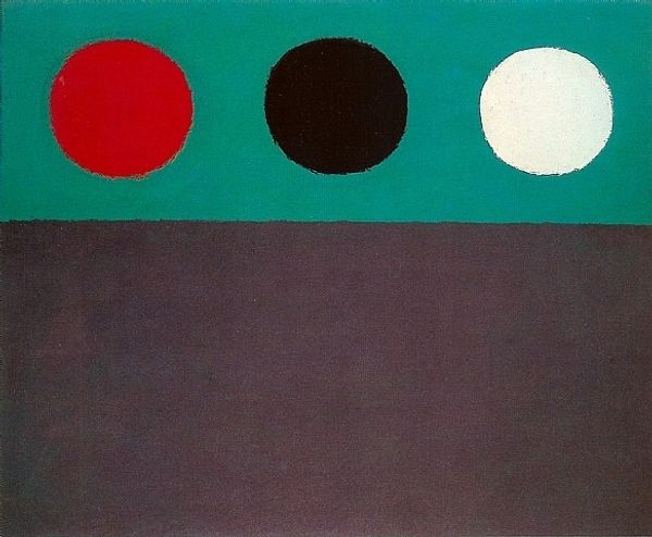 Thomas Downing's "France Blue" presents a field of azure inhabited by precisely placed circles, a seemingly simple composition brimming with echoes of art history. The circle, a symbol of wholeness and eternity, appears across cultures from ancient mandalas to Renaissance depictions of halos. Consider Giotto's use of halos to signify divine presence—here, Downing abstracts this symbolism, inviting us to contemplate the nature of spirituality in a secular age. Each circle, meticulously rendered in distinct hues, evokes a sense of individuality within a unified field. The red, echoing lifeblood and passion, contrasts with the serene blue, mirroring the dualities inherent in human experience. This arrangement resonates deeply, tapping into our collective memory of cosmic order and the interplay of opposing forces. Downing's work is an invitation to explore the psychological weight carried by these elemental shapes and colors, symbols that continue to evolve and affect our subconscious perceptions.