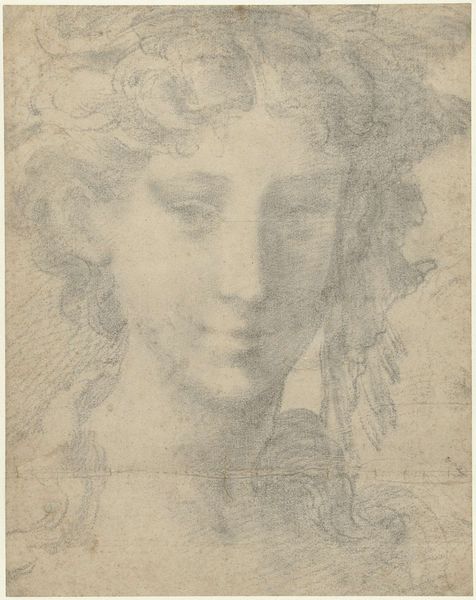 Curator: We're looking at "Head of a Young Woman in Three-quarter View Facing Right, with Lowered Eyes," a drawing rendered in charcoal and pencil, likely created sometime between 1550 and 1600. Editor: The delicate shading gives it such a soft, almost dreamlike quality. You can almost feel the weight of her lowered eyelids. Curator: Absolutely. The way the anonymous artist utilized these materials speaks volumes. Consider charcoal, a readily available substance derived from burnt organic matter, coupled with pencil, allowing for finer details. There is something distinctly proletarian about its crafting. What could the conditions of labor or cultural perceptions of this model or the artist have been? Editor: Interesting thought! What kind of societal role was this woman occupying at the time? Given the conventions and social dictates that governed gender during the Renaissance, her quiet, almost passive pose could signify prescribed notions of feminine virtue – silence, obedience. The lowered eyes reinforce that. Curator: Indeed. Furthermore, let’s examine the paper itself – likely rag paper at the time. This means that discarded textiles were repurposed as a surface for artmaking. This raises questions regarding waste, resourcefulness, and artistic experimentation of its making and of similar artworks made with repurposed materials. Editor: I hadn’t thought about it that way. Her expression isn’t sad or submissive, though; it feels more… introspective, perhaps resisting the confines through an internal quietness. Maybe this rendering defies rigid categorization. Perhaps, by extension, so did this person. Curator: It's true, her expression has an enigmatic ambiguity. While situated within the frame of gendered expectations of that historical moment, there’s an undercurrent of individual presence that remains palpable. She almost invites us to imagine the socio-cultural factors informing her positionality. Editor: Ultimately, that might be why this seemingly simple sketch holds so much power. We are peering into a specific time and place through a particular and unique lens. It’s almost as if the texture of the charcoal on the textured paper carries all these layers.