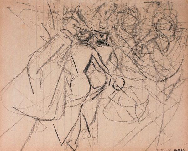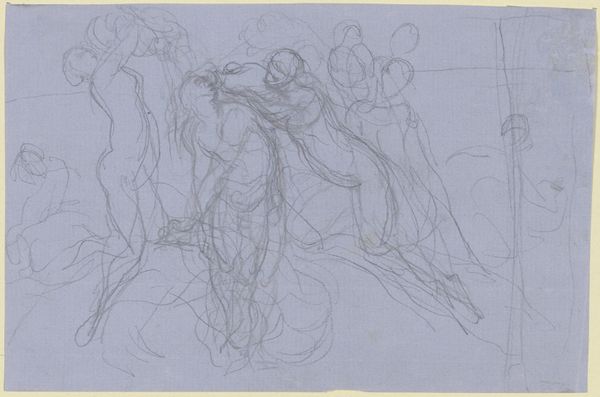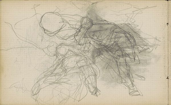 Curator: Welcome. Let's examine this fascinating work, “Figuurstudies,” by Matthijs Maris. The dates attributed to this drawing span from 1849 to 1917, offering a wide interpretive lens given Maris's artistic trajectory during this period. The medium is pencil on paper. Editor: Immediately, there's something raw and ephemeral about it. These fleeting figures, caught in gestural lines—they almost seem to be dissolving into the page. The artist truly focuses on posture in time. Curator: Maris was indeed preoccupied with capturing fleeting moments, a trait common in Impressionist works, although he himself remained something of an elusive figure within that movement. Academic art's principles of anatomy and form intertwine here with Maris’ personal sense of visual rendering. We might ask, what's being studied? Editor: It appears he is capturing working-class individuals, perhaps women given their presumed garments. It suggests observation of social class through their pose. Maris may be recording these individuals to render their existence. Who were they? Curator: These are, more than likely, sketches of figures as preparatory studies. Artists often relied on this kind of documentation, either using the notes later for large works or keeping the studies as independent pieces in and of themselves. The location is a reminder of access and ownership of work like this, too, situated in a museum now. Editor: That location confers status and visibility upon the forgotten laborers from which Maris seemed to make his drawing, so there’s an intersectional tension there—who has their legacy highlighted? In our view, “Figuurstudies” isn’t simply a display of a human likeness, but also speaks volumes on identity and social standing. Curator: This particular piece is quite evocative due to its seemingly unfinished, gestural lines. The minimal use of the pencil amplifies the sentiment of loss, of remembrance. I'm not sure if I agree, precisely, that Maris intended necessarily any kind of political or social message, but I appreciate the sensitivity this unlocks for your interpretations. Editor: I find that interpretations from diverse points of views—those not from traditionally “Art History” or white Euro-centric frames—add richer dimensions and new insights that bring these objects back into collective dialogue in a useful and inclusive way. Curator: Indeed, diverse interpretative perspectives provide renewed vitality to our shared artistic patrimony and open artworks for wider viewing possibilities, and richer socio-political understanding of image creation and access. Editor: Precisely.