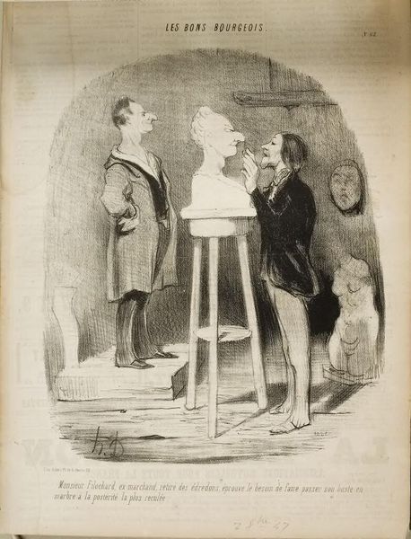 Here, in this lithograph by Honoré Daumier, a painter and a viewer stand before an easel. The painting displays a lonely figure walking toward a simple house. The motif of the artist in his studio is a powerful one, echoing through the ages. From medieval depictions of Saint Luke painting the Virgin to Rembrandt’s self-portraits, the artist’s workspace becomes a stage for exploring creativity itself. In Daumier’s hands, however, it transforms into social commentary. The exaggerated features of the men and the ostentatious frame suggest satire. It is a visual joke on the artistic establishment. Consider how the romantic idea of the solitary genius, inherited from the Renaissance, here devolves into a scene of almost farcical self-importance. Daumier uses the familiar setting of the artist's studio to question the values of his time. It's not merely a scene; it’s a mirror reflecting society's own vanities and delusions.