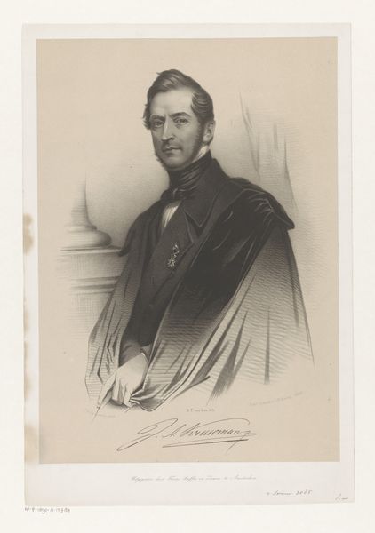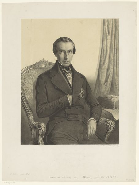 Johan Philip Koelman made this portrait of Jacob George Hieronymus van Tets using graphite. This portrait provides a glimpse into the world of 19th-century Dutch aristocracy. Van Tets, a member of the Dutch nobility, is depicted with a quiet confidence, his posture and attire speaking to his social standing. The portrait captures more than just his likeness; it reflects the values and expectations placed upon individuals of his class. The choice of graphite lends a certain softness to the image. Koelman seems to be exploring themes of identity and representation, but also engaging with the conventions of portraiture. The portrait offers a meditation on the relationship between the individual and their social context.