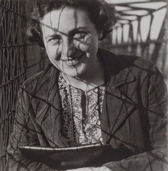Curator: This is Dorothea Lange’s portrait, taken between 1938 and 1960, titled "Arkansas mother come to California for a new start, with husband and eleven children. Now a rural rehabilitation client. Tulare County, California." It’s a gelatin silver print. Editor: My immediate impression is resilience. There’s a softness to the light, yet her stance—arms crossed, leaning slightly—suggests strength despite the hardship hinted at in the title. The subtle monochrome palette almost feels timeless. Curator: It is a compelling combination. Note the almost Madonna-like quality. The gentle, knowing smile speaks of hope amid difficulty. The cross formed by her arms echoes classic iconography of strength and maternal sacrifice. Editor: Absolutely, but I think the title is key here. Lange is consciously framing her within a larger narrative of the Dust Bowl migration and the promises—often broken—of California. It humanizes the statistics we often see associated with this period. The “rural rehabilitation client” aspect situates the image in a New Deal context. Curator: Good point. But I'm intrigued by the symbolism inherent in her clothing; the utilitarian style and simple belt suggest both practicality and an enduring connection to the land, despite their displacement. It signifies her rural roots but also her readiness to adapt. Editor: True. And that weathered wooden post she leans against becomes symbolic, too, perhaps representing a support, even a makeshift one, in a new and challenging environment. It all feeds into the politics of representation. Lange, I think, is prompting the viewer to empathize, to confront the human cost of economic policies and environmental disaster. The picture transcends the aesthetic. It becomes a call to action. Curator: Yes, seeing that shared visual vocabulary brings together elements of enduring, archetypal suffering and yet grounds it in very specific lived experience, which intensifies its appeal. Editor: Ultimately, this image challenges us to consider whose stories get told, and how we interpret those narratives through a critical lens. Curator: A powerful reminder to see the timeless and the timely interlaced in a photograph.