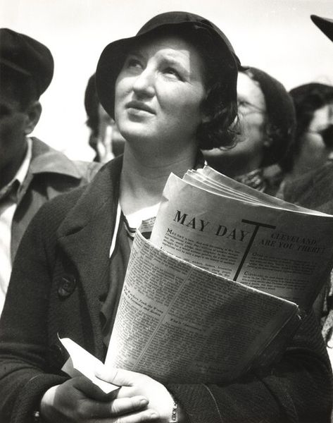Gordon Parks made this photograph, Shopper, Paris, with gelatin silver. What strikes me first is the woman's gaze. It's so direct, almost confrontational, yet softened by a hint of a smile. Parks captures a moment of connection, a shared glance across the space between photographer and subject, and also between us. The texture of the photograph is rich, from the rough wool of her coat to the fine lines etched on her face. Look at the way the light catches her glasses, creating these small, bright circles that draw your eye. It's like she's peering into your soul, or maybe she's just sizing you up as another shopper. Parks, like many photographers, often reminds me of painters like Lucian Freud, who also had an unflinching eye for the human condition. Ultimately, this image is a reminder that art is an ongoing conversation, a way of seeing and being seen, that transcends time and place.