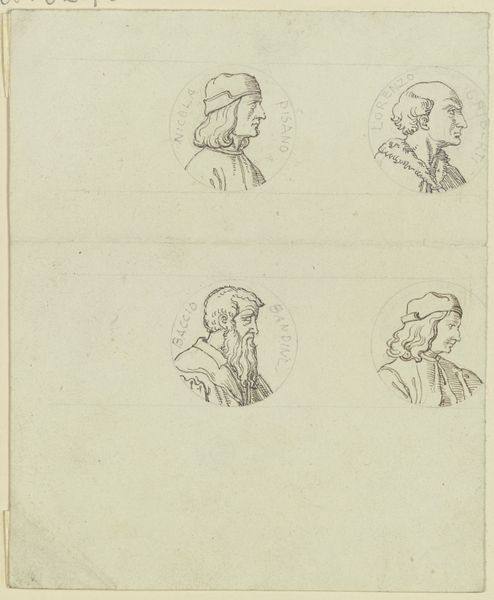 Curator: The Rijksmuseum holds this fascinating drawing titled "Twenty-One Busts of Men and Women" crafted in 1774 by Daniel Nikolaus Chodowiecki, using pen on paper. Editor: Immediately, I’m struck by the sheer variety of individuals captured here. Each portrait, though small, offers a unique glimpse into 18th-century life. I notice their aging progress, each bust a different step forward, marked with the wrinkles of their years. Curator: It’s interesting to view these through an intersectional lens. Consider the socio-economic implications behind their attire and hairstyles. Some boast elaborate wigs and fashionable clothes, indicative of a certain social standing, while others appear more modest, suggesting different lived experiences rooted in class. Editor: Exactly. Chodowiecki's use of pen allows for a delicate and economical rendering of detail. Notice the marks on the page, almost like annotations of social performance. Curator: I also wonder about the identities of the people in the images and how representative the collection is as a snapshot of a certain time. Considering prevailing gender norms of the time, what can we discern about women's roles, captured only in profile in their various styles and coverings? How do we interpret them today through modern perspectives on gender? Editor: We could even analyze the labor that produced such precision and attention to detail and the potential use cases for such a detailed and vast character index from an academic standpoint. Was Chodowiecki training? Studying types? Were these characters sketched for transfer into a larger production? Curator: It's an insightful view into a moment of radical self-reflection for this period and culture, raising many points on individuality, status and age in 18th century life. Editor: And even how artistic practices could become exercises in classifying and understanding the social landscape through careful labor and skill. It's almost like social cartography through portraiture.