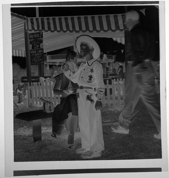 Editor: This photograph by Jack Gould captures a bustling outdoor market scene, with a vendor meticulously arranging fruit. The composition is striking in its use of repetitive shapes. What do you see in this piece? Curator: The photograph's formal elements are indeed compelling. The geometry of the fruit and the rectangular forms of the stalls create a structured visual field. Note how the tonal range—the gradations from light to dark—defines the textures. Editor: It’s interesting how the light highlights the textures, almost abstracting the forms. I hadn’t noticed that initially. Curator: Precisely. Consider also the placement of the vendor's hand—a dynamic element against the static arrangement. The photograph invites us to examine the interplay of form and light. Editor: Thank you. I appreciate your formalist interpretation. Curator: It was my pleasure.