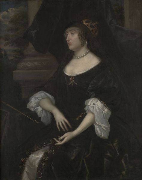 Here, at the Rijksmuseum, is a painting made by Adriaen van der Werff, showing us the “Portrait of Margaretha Rendorp, Wife of Jan van de Poll.” The painting's oval form and shadowy background draws our eye to the figure of Margaretha, dressed in blue and holding a basket of flowers. This portrait is more than a surface representation; the cool blues and contained oval shape create a sense of formality, while the open neckline and inviting gaze add intimacy. The way Van der Werff manipulates color and form suggests the changing social values of the time. The refined brushwork and carefully constructed composition speak to a desire to balance tradition with new, more personal expressions. The structured yet softened approach reflects broader philosophical shifts, moving from rigid doctrines to a more nuanced appreciation of human emotion. This portrait engages with questions about how we perceive identity through art. It doesn't just show what someone looks like, but explores how social roles and personal feelings can be expressed within the established conventions of portraiture.