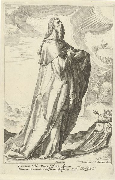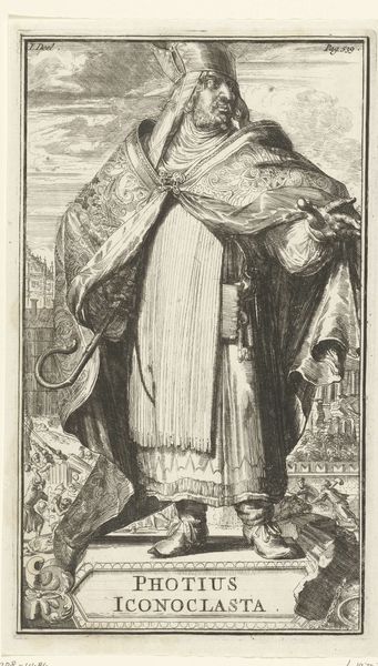 This is Philips Galle’s portrait of Margaretha van Beieren from the late 16th or early 17th century, rendered in engraving. The linear precision of the engraving technique allows for a remarkable depiction of texture and detail, immediately drawing your eye. The composition adheres to a rigid formality. Margaretha is presented frontally, her figure dominating the vertical axis of the image. The lines of her dress, the staff she holds, and even the architectural elements in the background converge to emphasize her imposing presence. The use of chiaroscuro, created through dense networks of fine lines, models her form and creates a sense of volume and depth. The intricate patterns on her garments, meticulously rendered, denote status and wealth, essential signifiers of her imperial role. Note how the stark contrast between light and shadow destabilizes the image. This portrait is more than just a likeness. It is an exercise in conveying power through symbolic representation. Notice how the artist transforms the graphic and representational to engage in a dialogue about authority and representation.