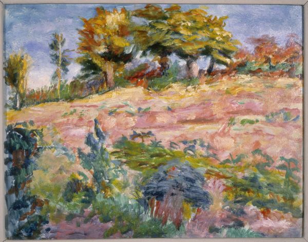 Léo Gausson painted this untitled oil on canvas landscape in 1895, a period when artists were increasingly drawn to the expressiveness of color. Gausson's vibrant brushstrokes seem to capture not just a scene, but a feeling. In the late 19th century, painting landscapes was about more than just representing nature; it was about expressing a personal connection to the land. For Gausson, perhaps it was a way of connecting with the rapidly changing world around him. He was part of a generation grappling with industrialization and urbanization. The vivid colors and expressive brushwork invite us to consider our relationship to the environment. How do we find solace and meaning in the natural world amidst the complexities of modern life? It’s a visual reminder of the enduring power of nature to evoke emotion and inspire contemplation.