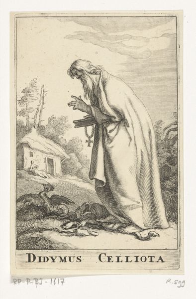 Editor: This is "Heilige Ammon van Tabennae," an engraving by Frederick Bloemaert, created sometime after 1636. The figure is rendered so meticulously, every line seems intentional. What stands out to you about this work? Curator: I see a fascinating glimpse into the material conditions that shaped 17th-century printmaking. Notice how the crisp lines were achieved? It's not just artistry, but the mastery of engraving tools and the specific properties of the metal plate. We also must consider the economics: how many impressions could be made before the plate wore down? And who was consuming these images? Editor: So you’re looking beyond the religious aspect of Saint Ammon to how the image itself was manufactured and circulated? Curator: Precisely. The social context is crucial. Prints like these were often reproduced and sold, reaching a broader audience than unique paintings. They served as devotional objects, yes, but also as a form of visual commodity, consumed within a complex network of production and exchange. Does considering it that way change your perspective? Editor: It does! I initially focused on the individual saint but now I am thinking about Bloemaert and his workshop, the cost of the materials, and who was buying the prints and for what purpose. Curator: The act of its creation and the resources required are inextricably linked to its meaning and purpose. It’s important to examine the labor involved, the availability of materials like metal and paper, and the mechanisms through which such imagery permeated society. It all adds another layer of depth and understanding to the work. Editor: I learned that looking at art this way broadens our understanding of its historical value. Thank you! Curator: My pleasure! It's about uncovering the story behind the story, looking beyond the surface to the processes and social factors that shape artistic creation.