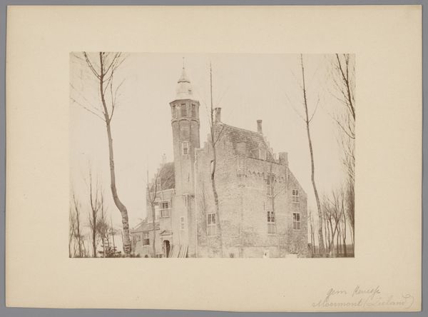 This photographic print of Kasteel van Wijchen shows the castle in the Netherlands through a sepia-toned lens. The anonymous photographer plays with light and shadow, building a textural image of brickwork and foliage. The sepia tone itself is interesting, reminiscent of faded memories. Look closely and you can almost feel the rough texture of the bricks, the way the light catches on the edges of the roof tiles. It's as if the photographer were trying to capture not just the image of the castle, but also its weight, its history. The windows are dark, almost black, offering no glimpse into the life within, adding to the sense of mystery. The way the trees frame the castle suggests the building is more than just architecture; it's embedded in the landscape. I'm reminded of Bernd and Hilla Becher's photographs of industrial structures, where the subject is presented as a typology, studied and recorded, but with an aesthetic sensibility. This image, like theirs, invites us to consider the beauty in the everyday, the stories held within the structures we build.