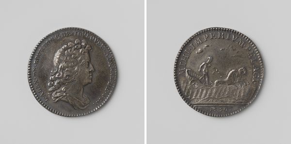 Nicolas Marie Gatteaux created this silver medal of Louis XVI, King of France, as a reckoning of the Extraordinary Wars. The visual language on this coin embodies the cultural and political climate of late 18th-century France. On one side, we see a profile of Louis XVI, referencing the long-standing tradition of monarchical portraiture. The other side depicts an abstract image relating to the extraordinary wars with the phrase 'Extraordinaire des Guerres 1777'. Given the historical context, one wonders what the artist’s intentions were. Is this a form of glorification or a subtle commentary on the financial strain caused by these wars? It could be considered progressive for its time, given the social and political tensions that would eventually culminate in the French Revolution. As historians, we look to such objects and their visual codes and cultural references to better understand the complex interplay between art, power, and society. Medals such as this one serve as historical documents which offer insights into the social conditions of the time.